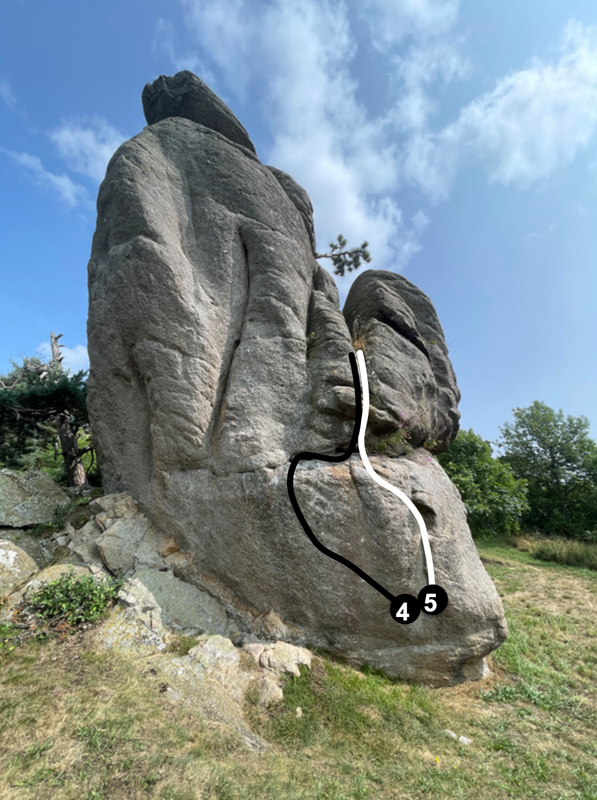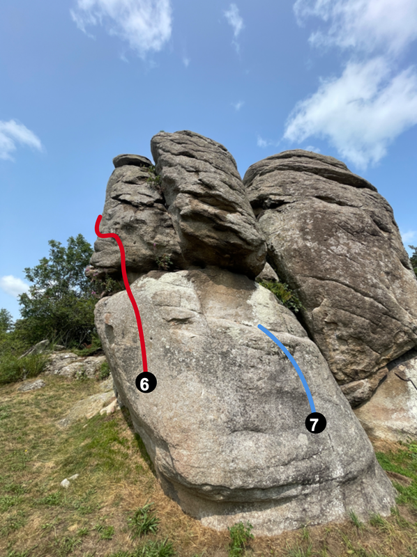 Premier rocher en arrivant sur le site, des tracés sont taillées dans le rocher. Possibilité de grimper encordé pour quelques voies